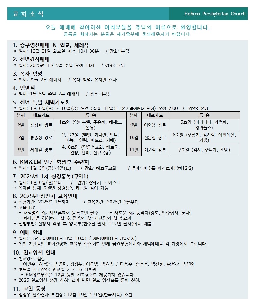2024년 12월 29일 교회소식