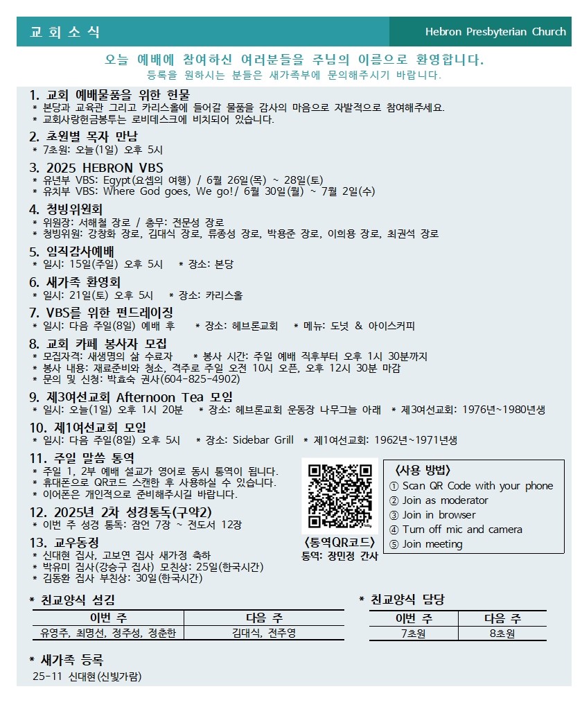 2025년 6월 1일 교회소식